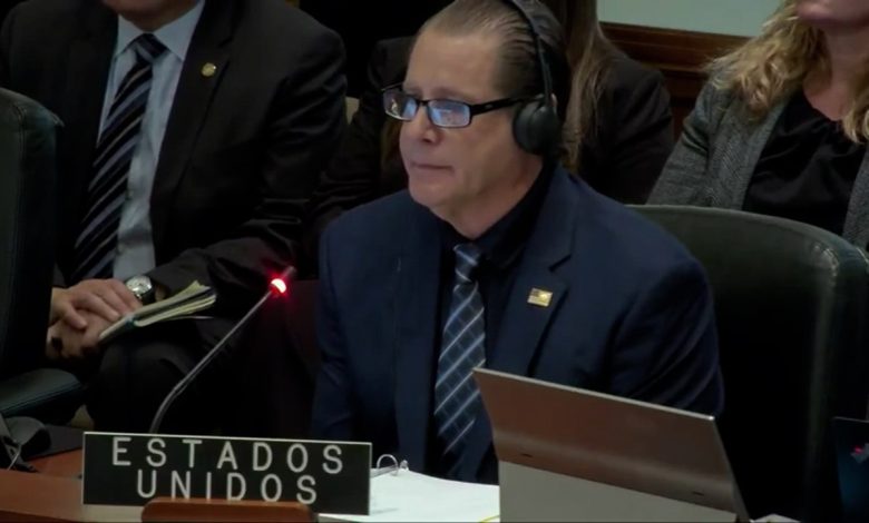 لحظه مگ – سخنرانی «لیاندرو ریزوتو» سفیر ایالات متحده در سازمان کشورهای آمریکایی درباره عملیات نظامی آمریکا در ونزوئلا با اعتراض یک فعال ضد جنگ آمریکایی قطع شد.